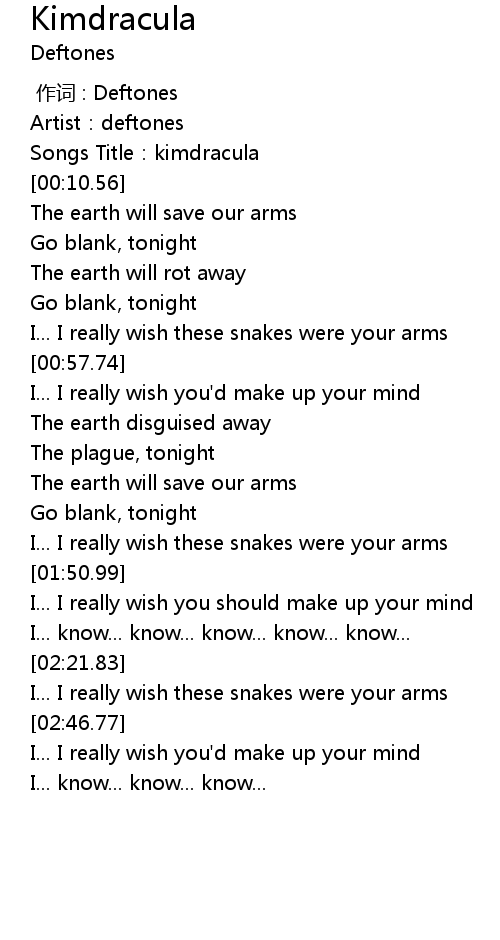 | [00:46.62] | I... I really wish these snakes were your arms |