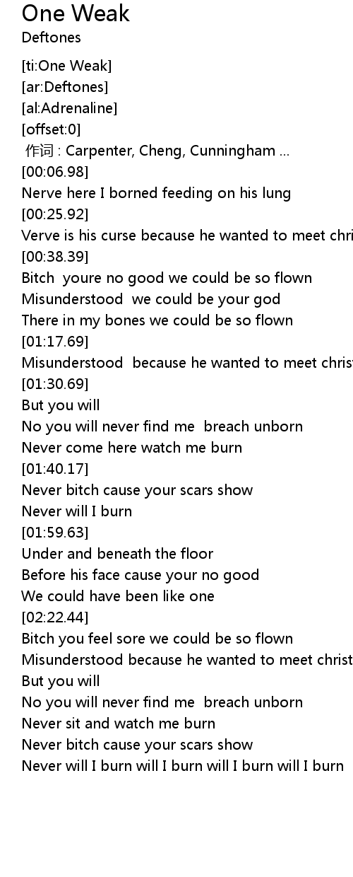 | [00:14.54] | Nerve here I borned feeding on his lung |