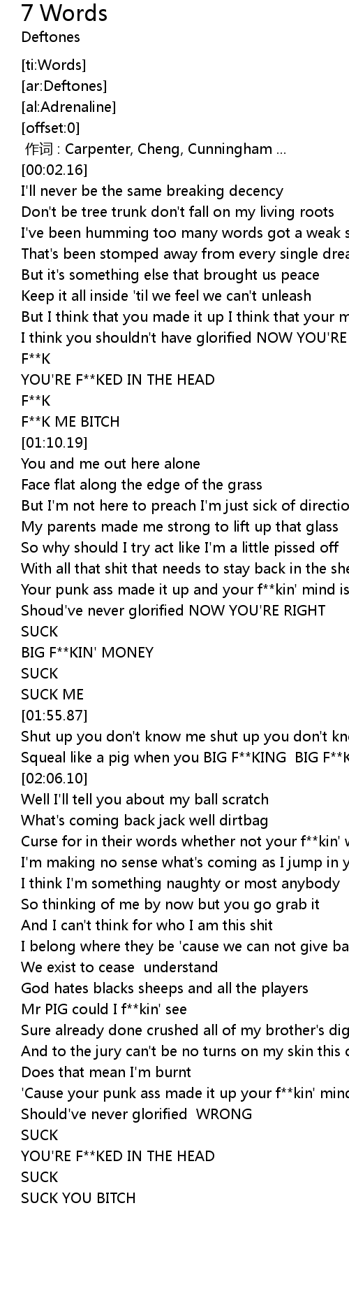 | [01:01.17] | YOU'RE F**KED IN THE HEAD |