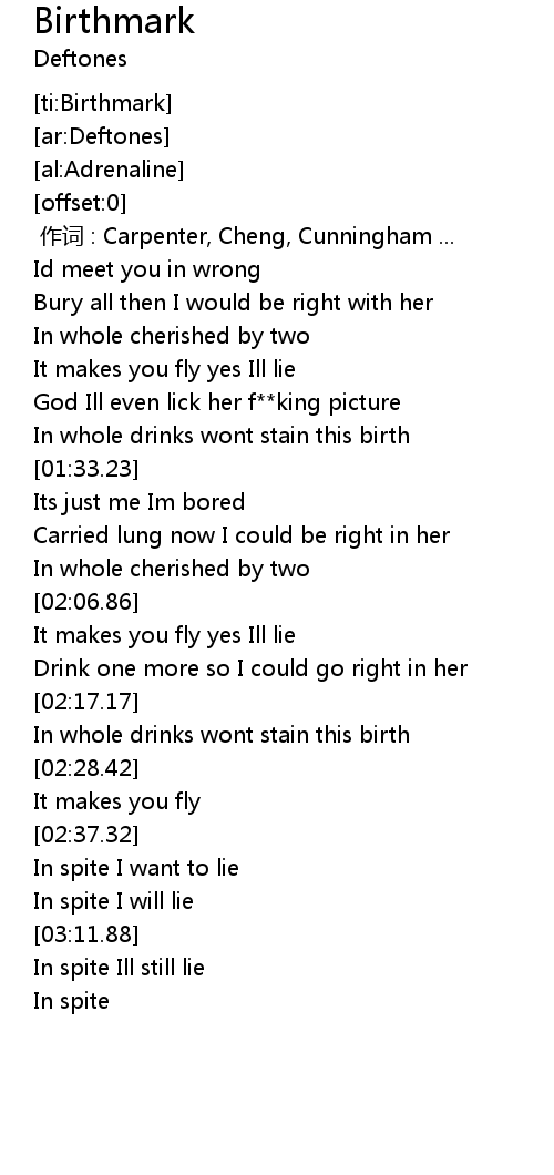 | [00:00.00] | 作词 : Carpenter, Cheng, Cunningham ... |
