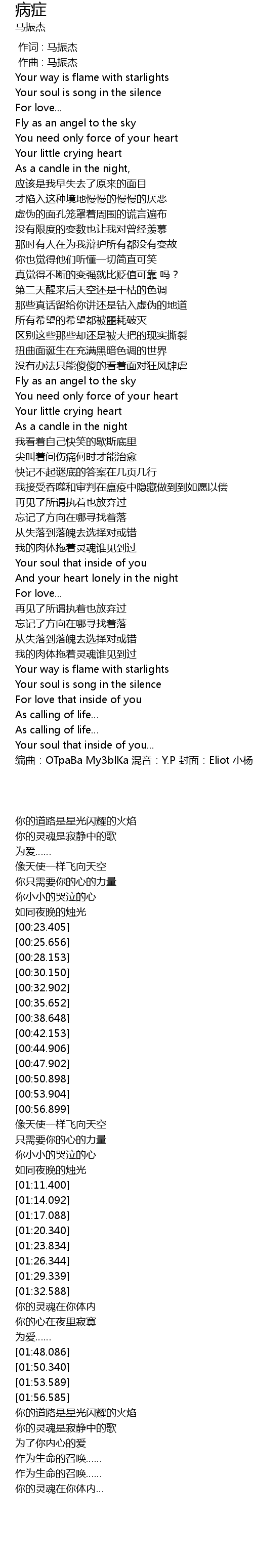 | [02:26.585] | biān qǔ: OTpaBa My3blKa hùn yīn: Y. P fēng miàn: Eliot xiǎo yáng |