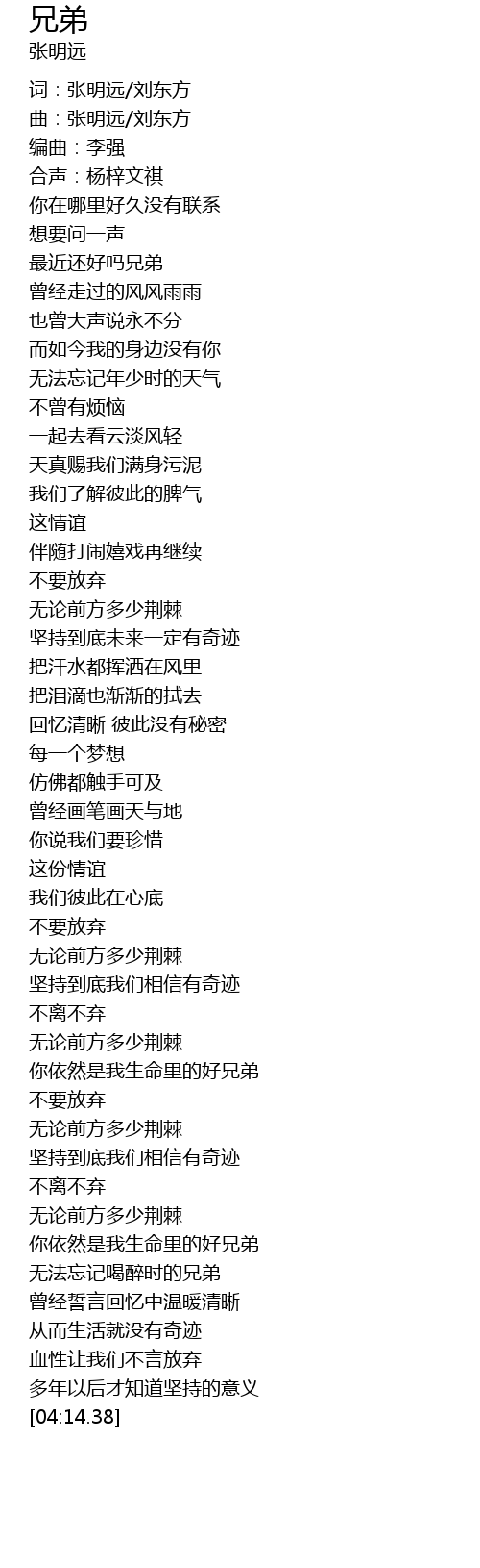 | [03:40.16] | 你依然是我生命里的好兄弟 |