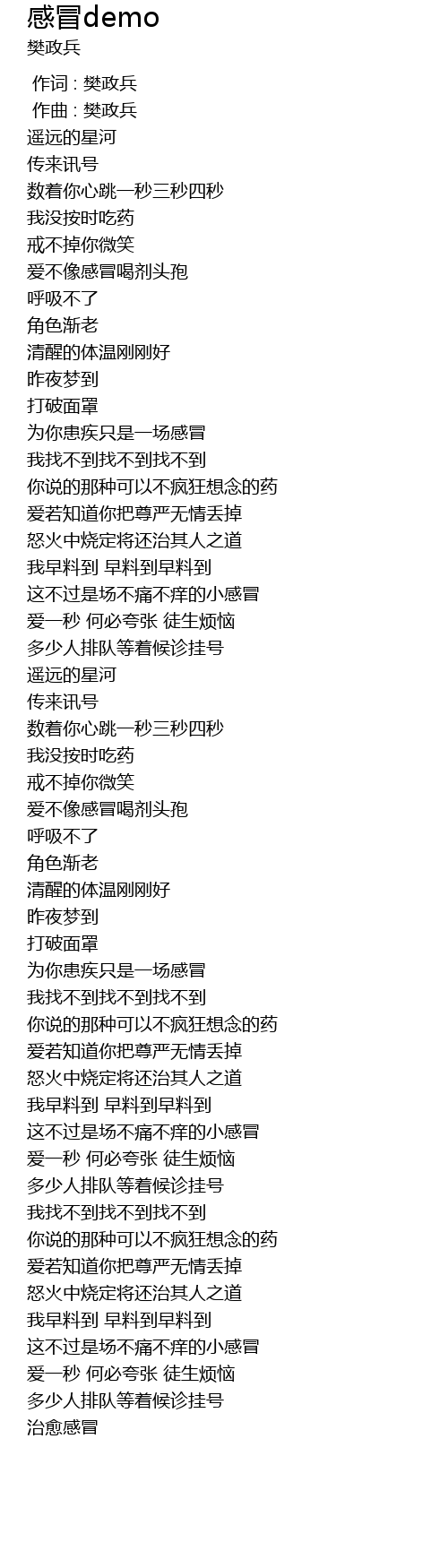 | [00:46.932] | 爱不像感冒喝剂头孢 |