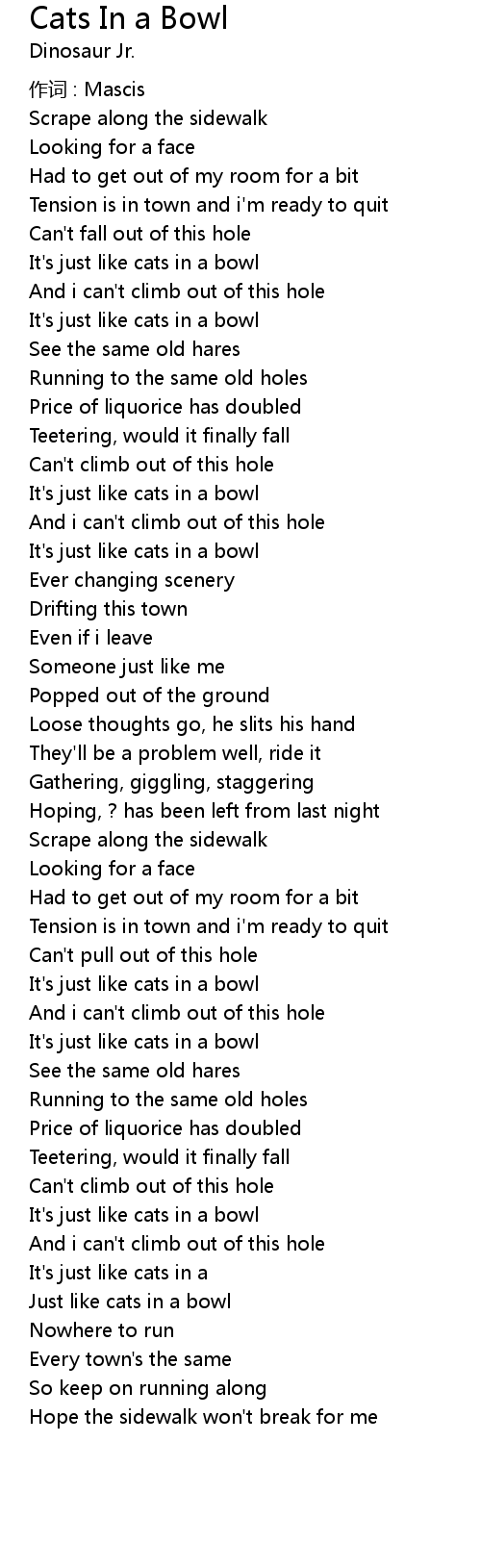 | Song | Cats In a Bowl |