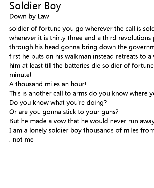 I am a lonely soldier boy thousands of miles from my home soldier of fortune . . . not me |