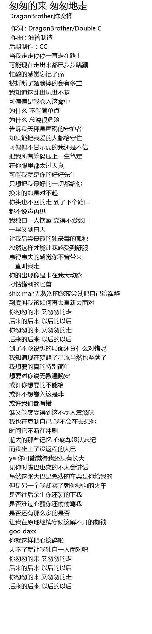 | [00:00.000] | 作词 : DragonBrother/Double C |