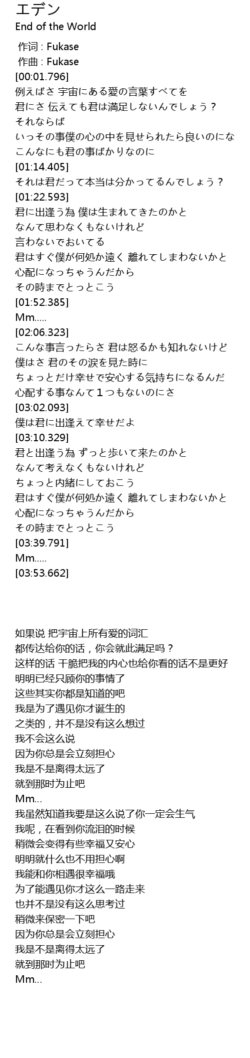| [00:00.000] | 作词 : Fukase |