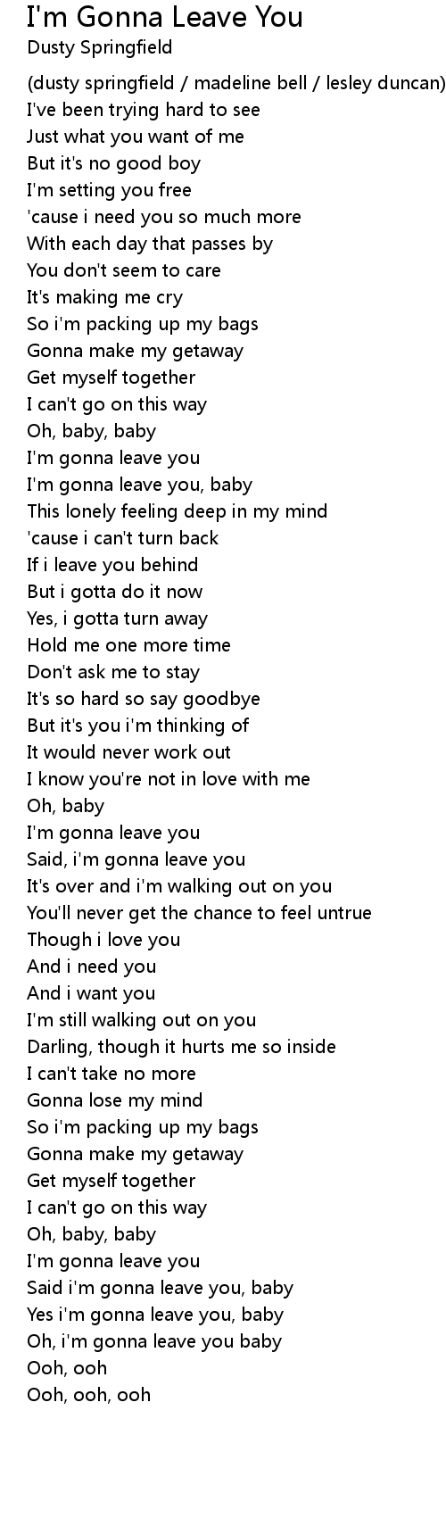 Oh, i'm gonna leave you baby |