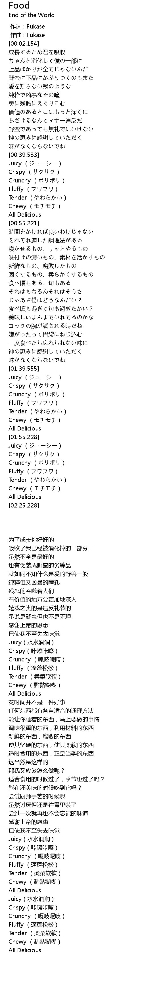作词 : Fukase |