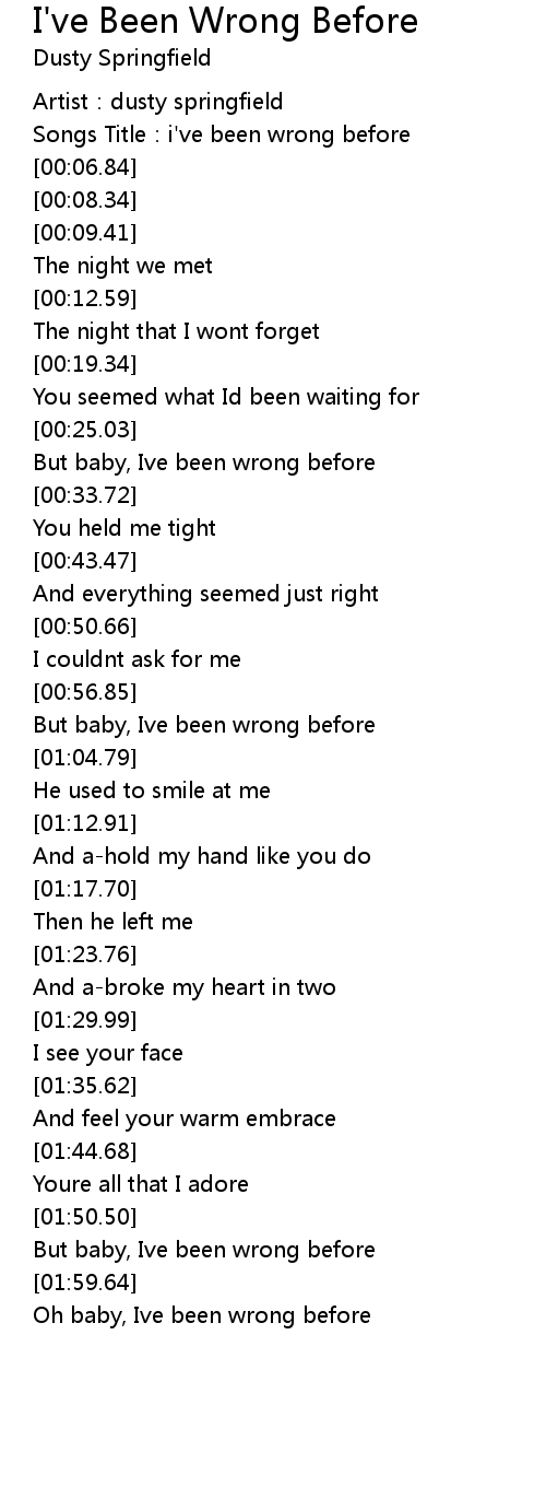 | [00:04.47] | Songs Title: i' ve been wrong before |
