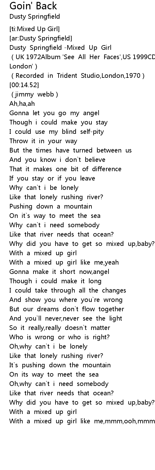| [00:02.03] | Dusty Springfield Mixed Up Girl |