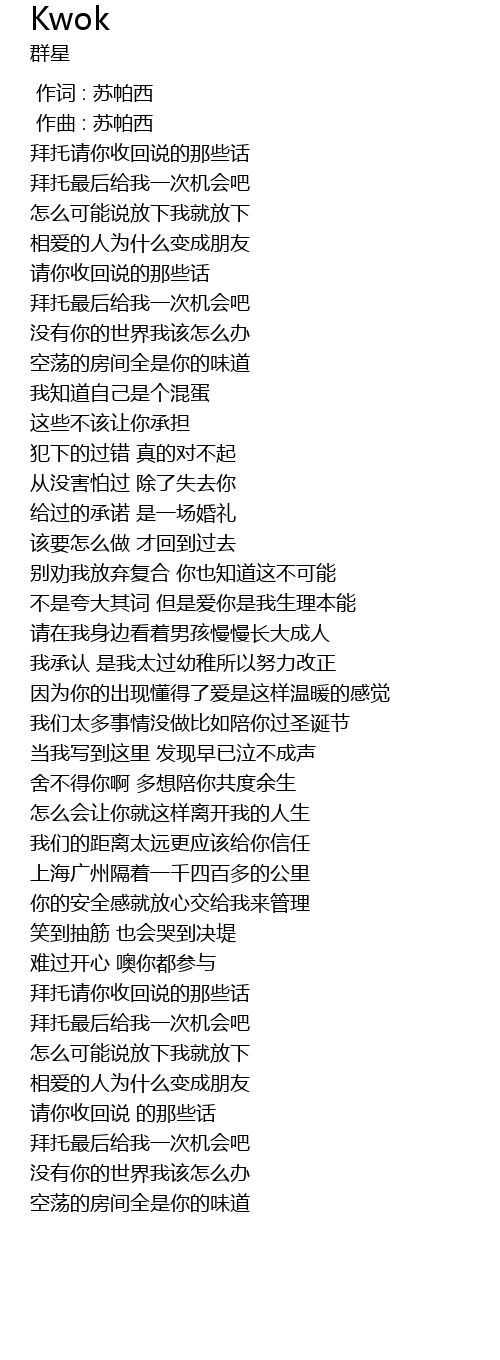 | [00:23.896] | 拜托请你收回说的那些话 |