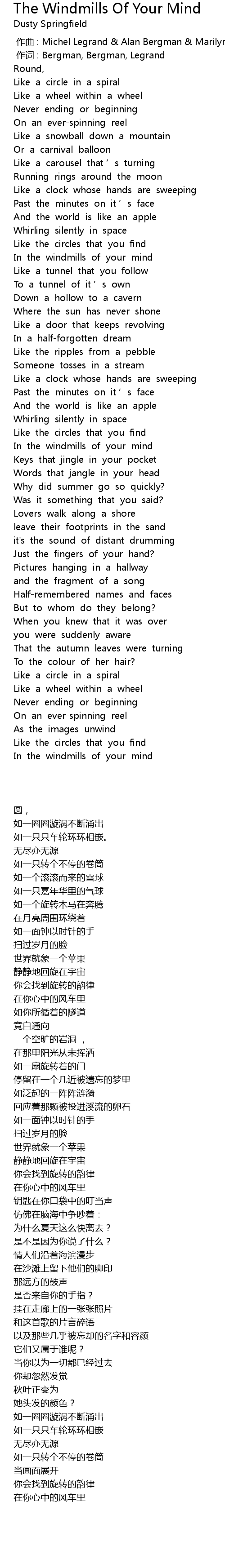 | [00:00.00] | 作曲 : Michel Legrand & Alan Bergman & Marilyn Bergman |