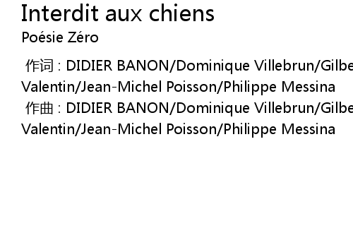 | [00:00.000] | zuo qu : DIDIER BANON Dominique Villebrun Gilbert Valentin JeanMichel Poisson Philippe Messina |