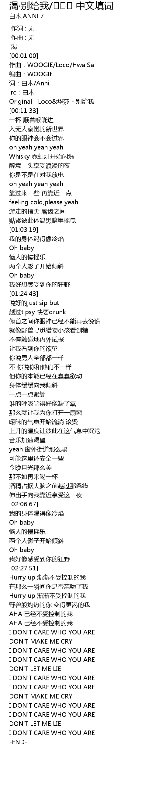 | [03:20.38] | I DON'T CARE WHO YOU ARE |