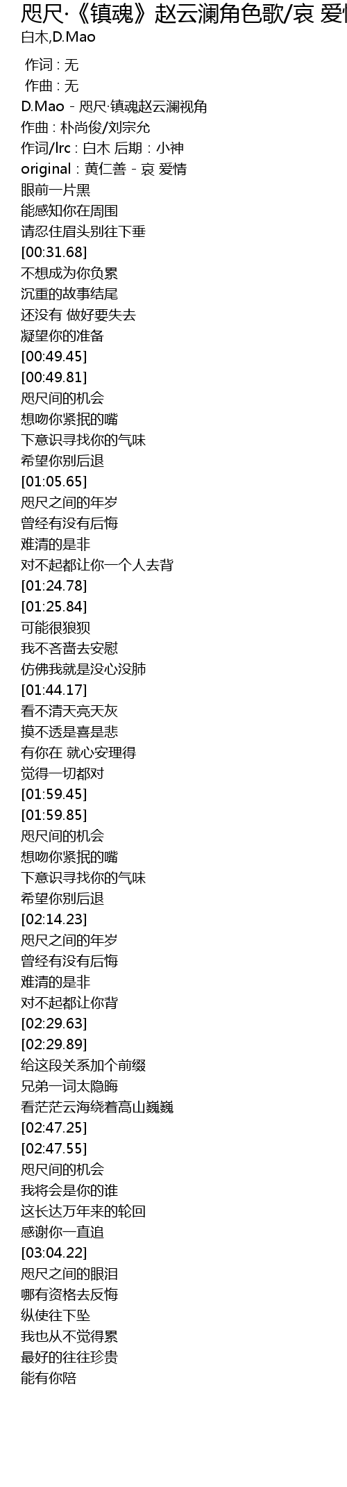 | [00:00.68] | D.Mao - 咫尺·镇魂赵云澜视角 |
