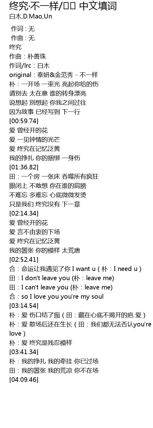 | [00:15.83] | original:泰妍&金范秀 - 不一样 |