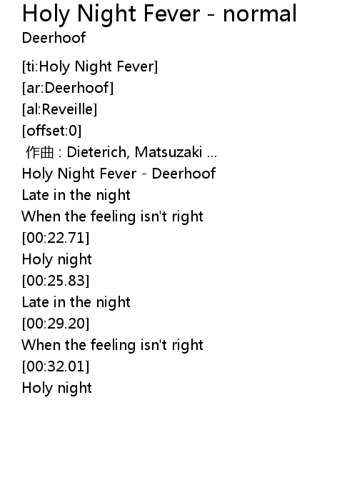 | [00:00.62] | Holy Night Fever - Deerhoof |