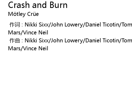 | [00:00.000] | zuo ci : Nikki Sixx John Lowery Daniel Ticotin Tommy Lee Mick Mars Vince Neil |