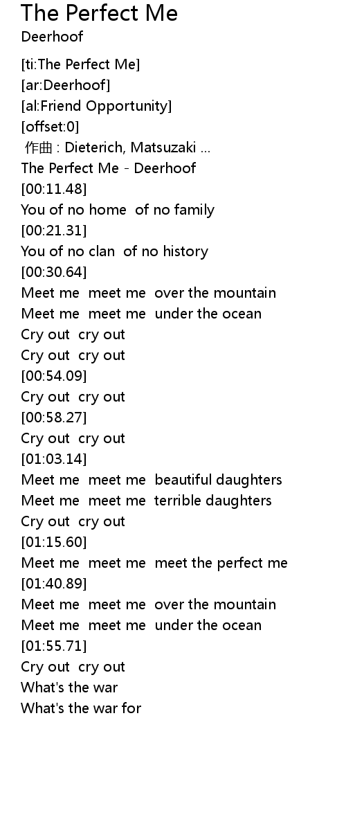 | [00:02.74] | The Perfect Me - Deerhoof |