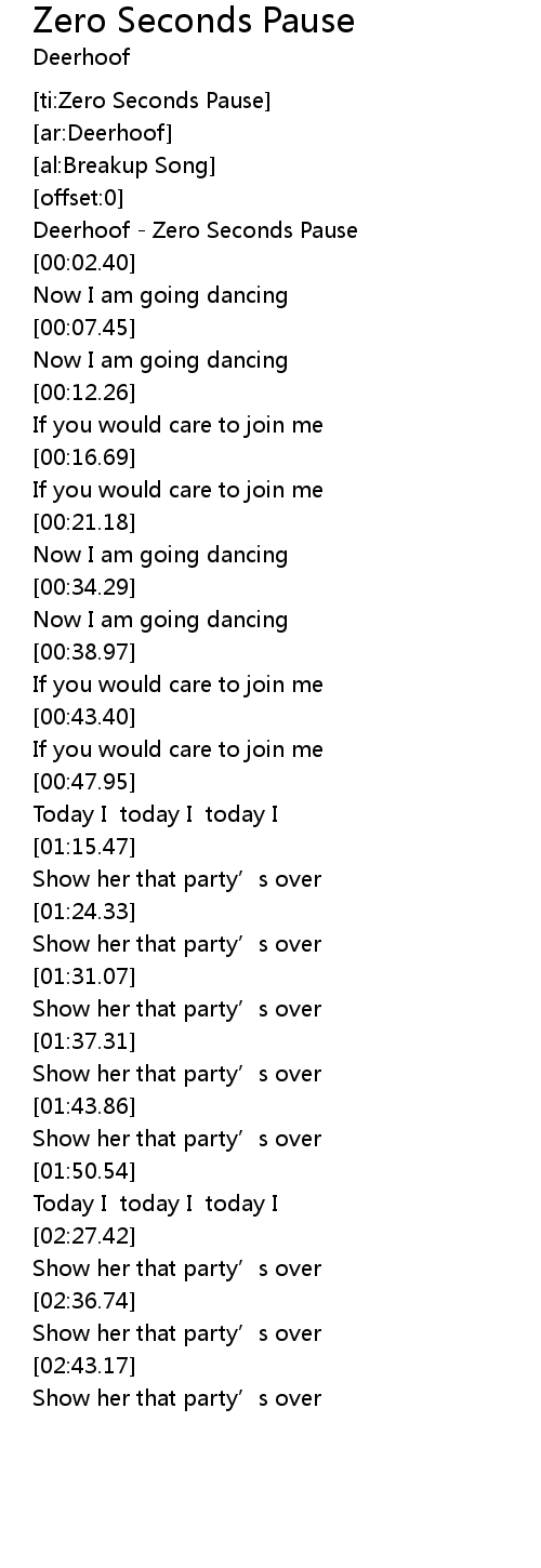 | [00:01.01] | Deerhoof Zero Seconds Pause |