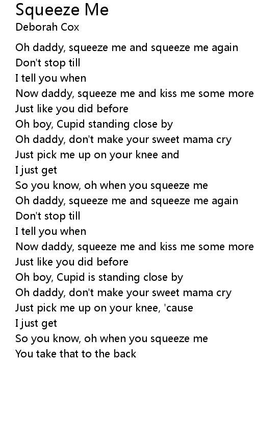 Oh daddy, squeeze me and squeeze me again |