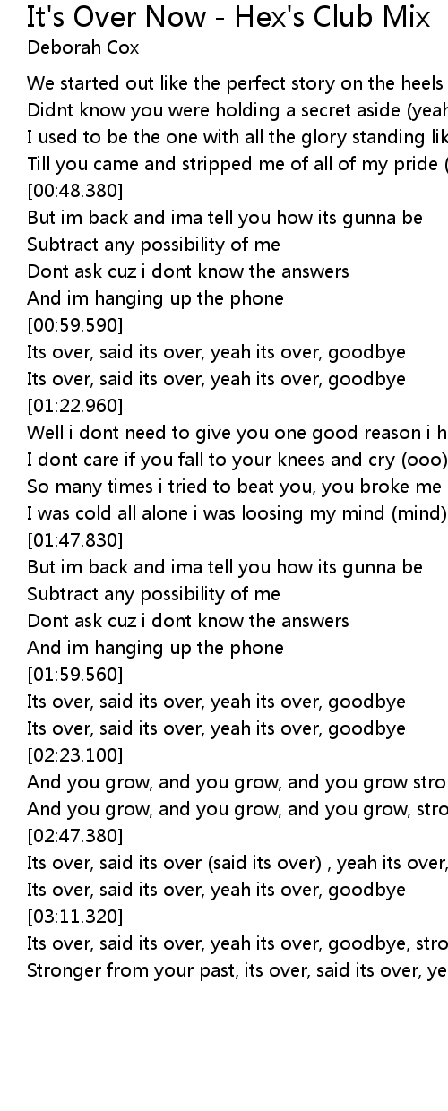 | [03:11.970] | Its over, said its over, yeah its over, goodbye, stronger from your past |