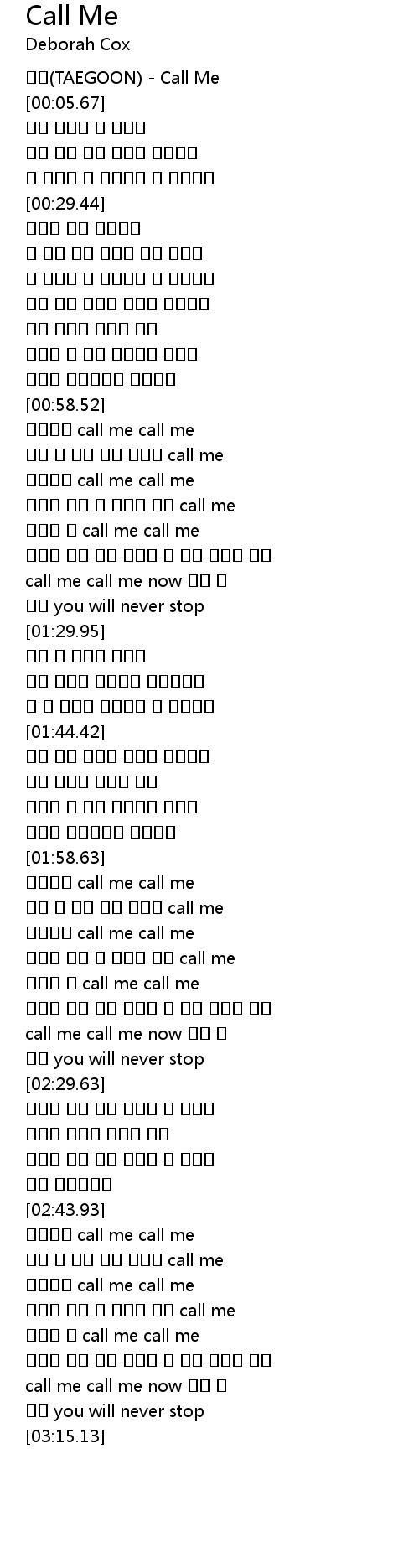 | [00:03.14] | 태군(TAEGOON) - Call Me |