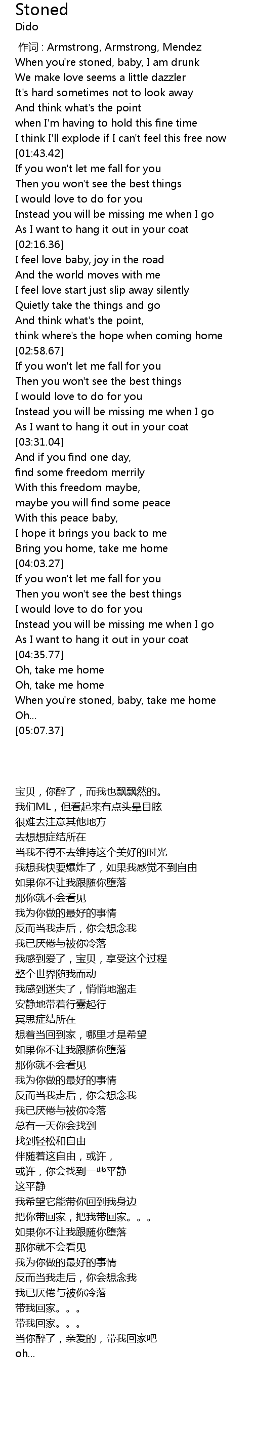 | [04:54.11] | When you're stoned, baby, take me home |