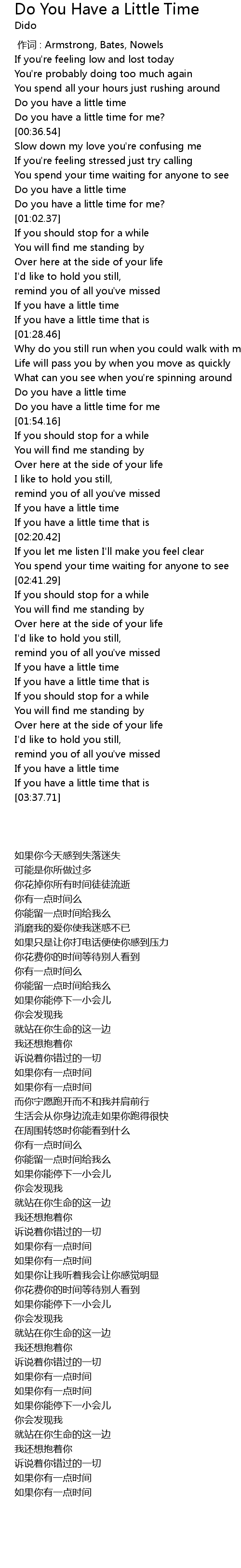 | [00:32.25] | Do you have a little time |