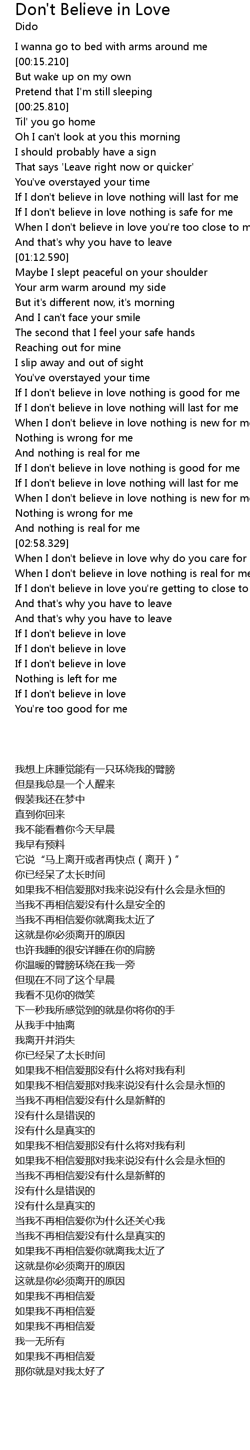 | [03:08.750] | If I don' t believe in love you' re getting to close to me |
