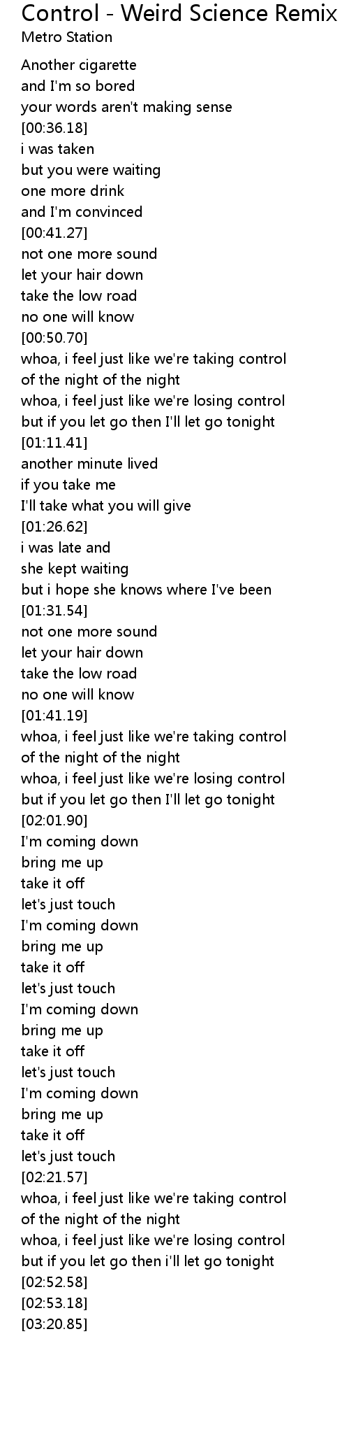 whoa, i feel just like we're losing control |