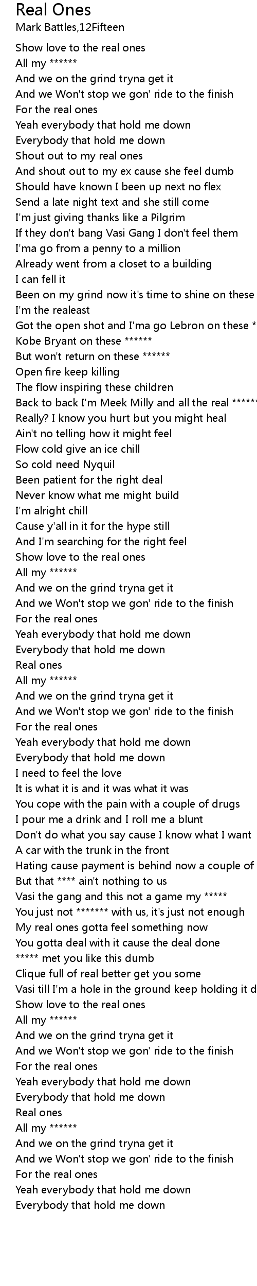 | [01:05.34] | Back to back I'm Meek Milly and all the real ****** feel me |