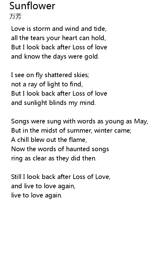 | But I look back after Loss of love | |