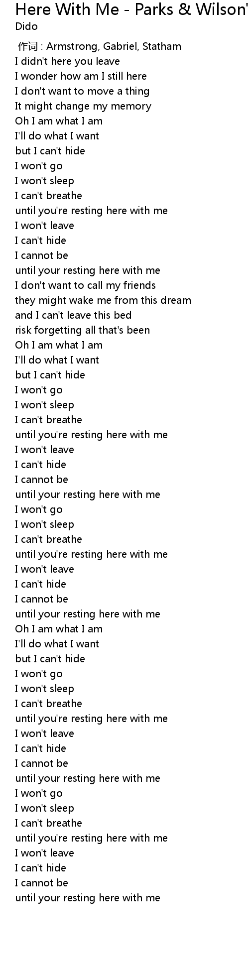 | Song | Here With Me - Parks & Wilson's Homeyard Dub |