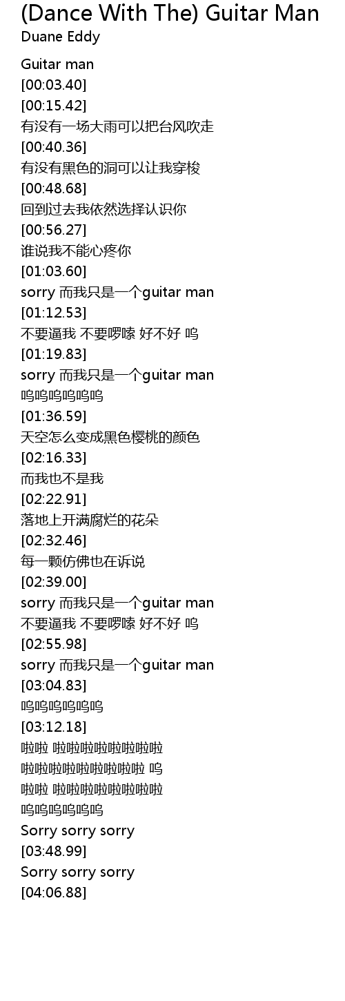 | [02:41.45] | sorry er wo zhi shi yi ge guitar man |