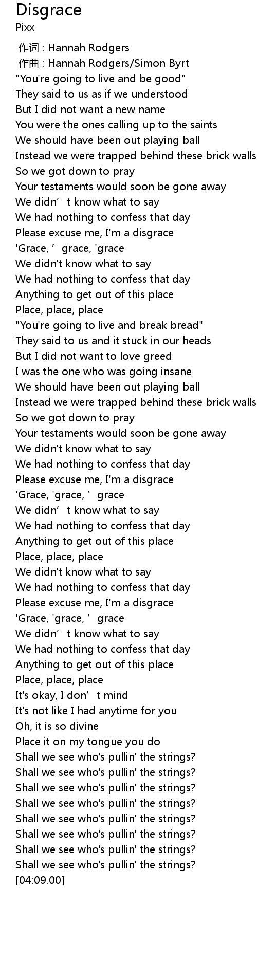 | [01:29.52] | ' Grace, ' grace, ' grace |
