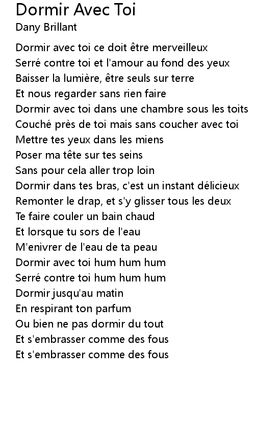 | Dormir avec toi hum hum hum | |