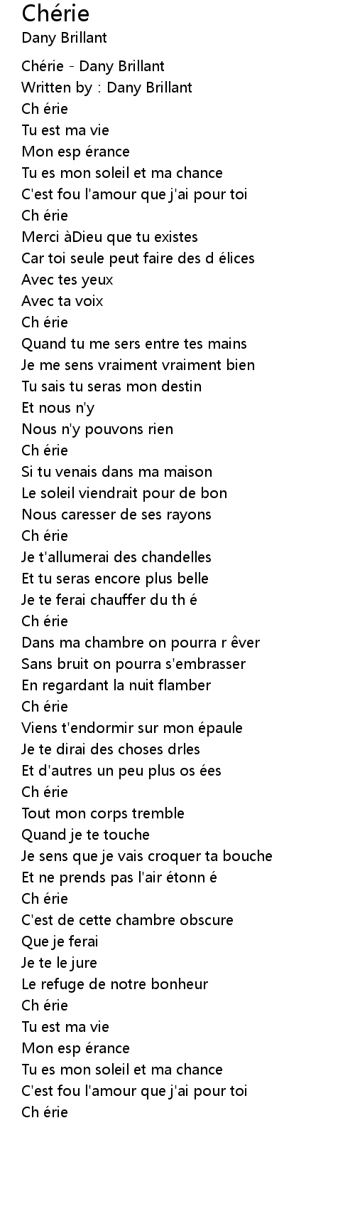 | [00:00.10] | Chérie - Dany Brillant |