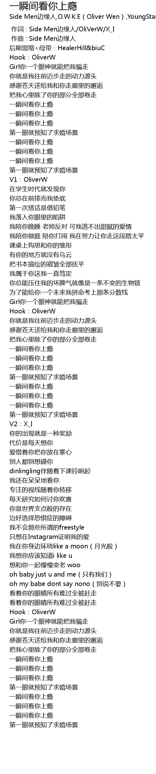 | [00:34.618] | yī shùn jiān kàn nǐ shàng yǐn |