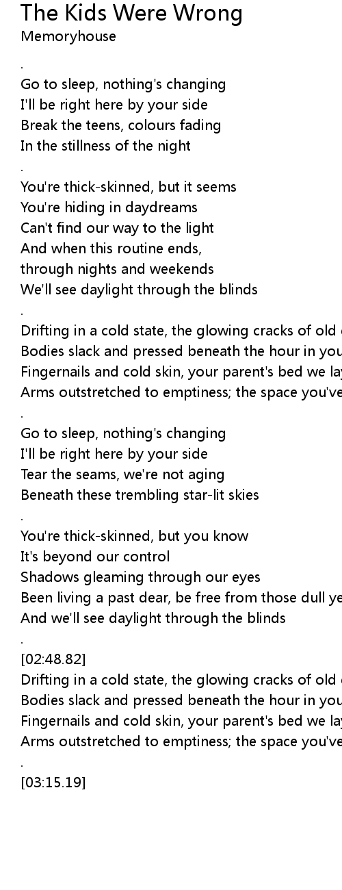 Fingernails and cold skin, your parent's bed we lay in |