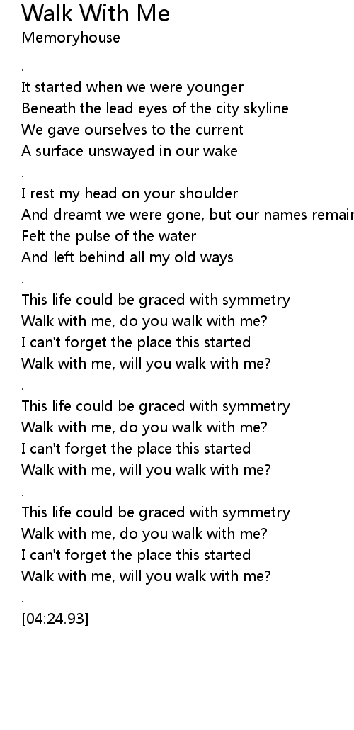 Walk with me, will you walk with me? |