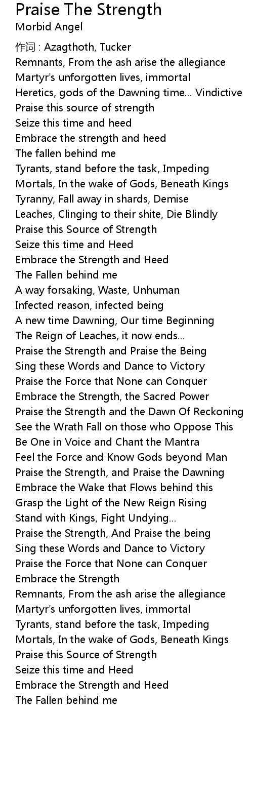| Praise the Strength, And Praise the being | |