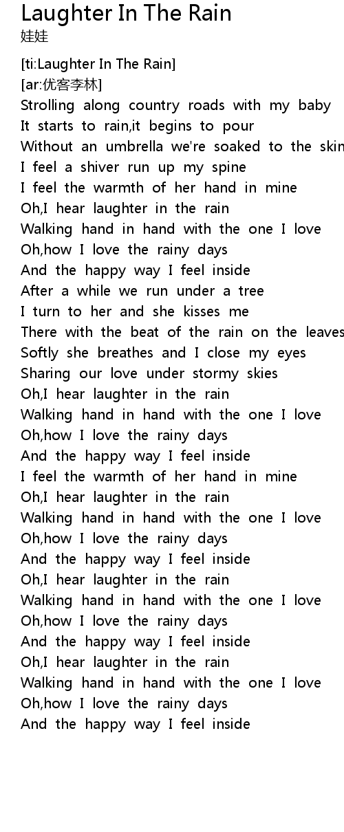 | [02:44.984] | Oh, I hear laughter in the rain |