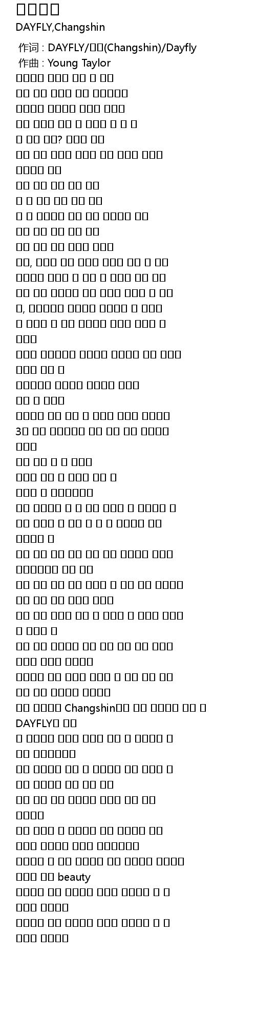 作词 : DAYFLY/창신(Changshin)/Dayfly |