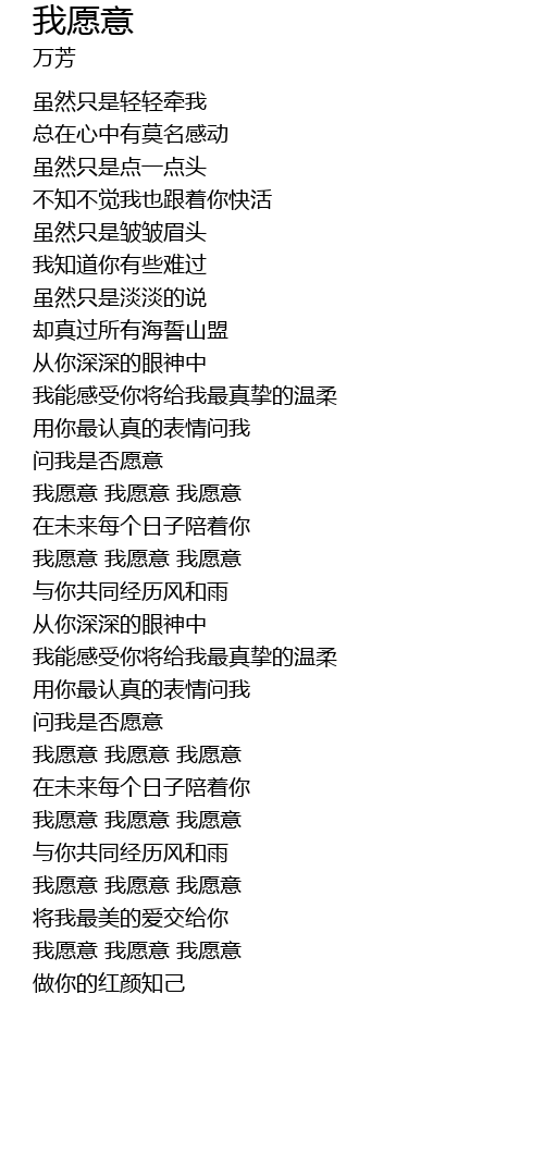 | [01:46.66] | 我愿意 我愿意 我愿意 |