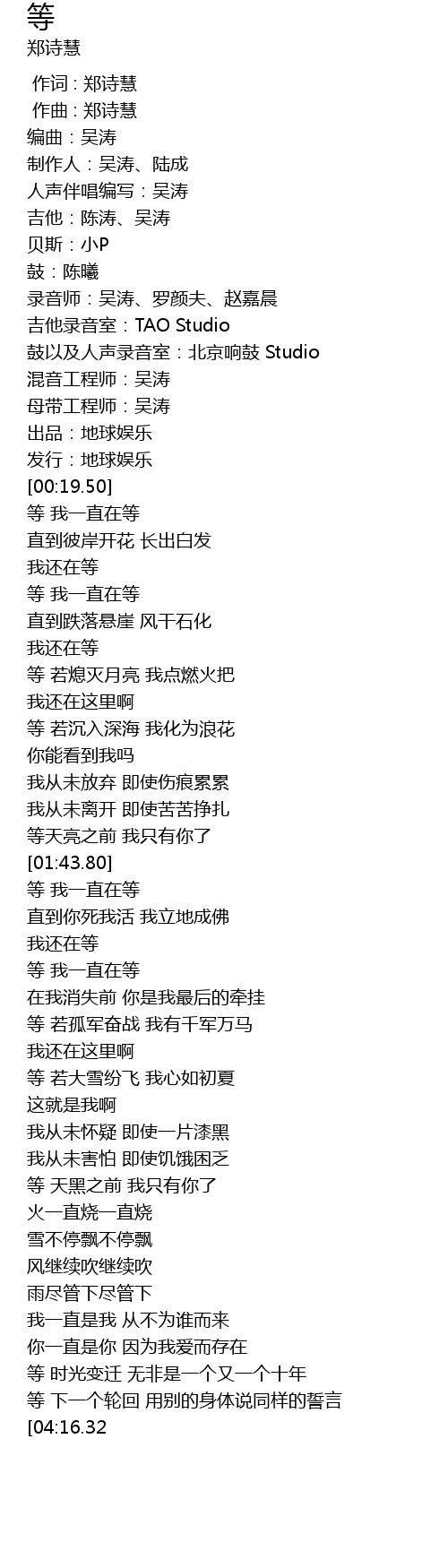| [02:00.74] | děng wǒ yī zhí zài děng |