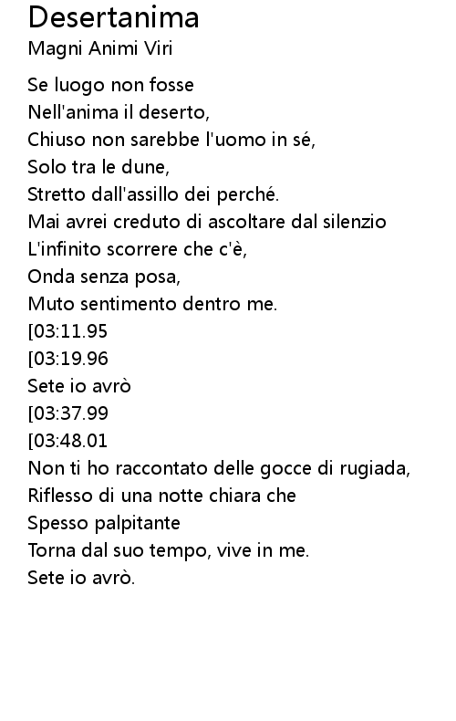 | [00:41.52] | Nell' anima il deserto, |