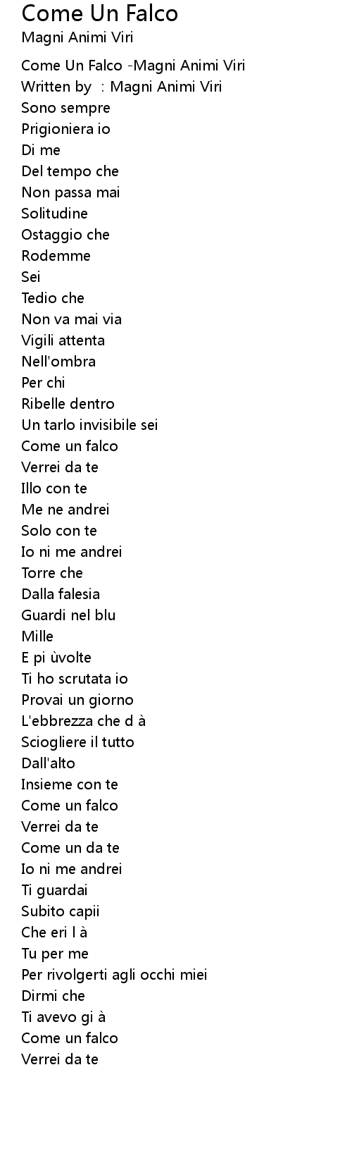 | [00:00.135] | Come Un Falco Magni Animi Viri |