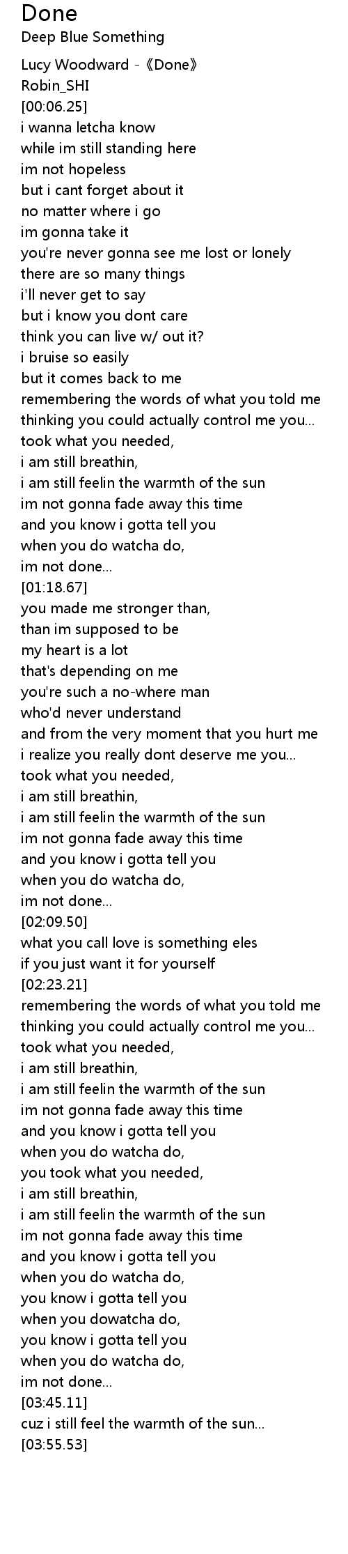 | [00:02.25] | Lucy Woodward -《Done》 |